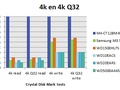 resultaten van de Crystal Disk Mark tests 4k en 4kQ32. De resultaten van de Crucial M4 waren uiteraard off the charts vergeleken met de normale HDD's.