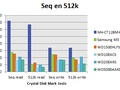 resultaten van de Crystal Disk Mark tests 512k en sequentieel