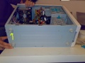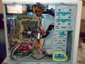 1. De ruimte om de CD ROM te plaatsen was te klein. Dit moest ik oplossen door stukken metaal te buigen (zie foto)
