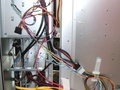 De kast biedt een erg goede wegwerking voor de kabels, er zijn rondom het moederbord vier sleuven waardoor kabels getrokken kunnen worden om achter het moederbord te verstoppen en vast te binden, hiervoor zijn ook zes grote kabelbinders meegeleverd, en een stuk of 25 tie-wraps. Echter, in het midden van de kast staat een grote 'paal', waar het dempingsmateriaal eigenlijk tegenaan komt, dus erg dikke kabels kun je er niet lans trekken, en SATA-kabels moet je zo vastplakken dat ze niet te ver uitsteken. Dit is wel een minpunt, op de manier van de foto gaat het dus ook niet dicht.