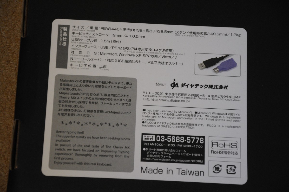Het keyboard zit in een vrij eenvoudige doos, waarop aan de buitenkant een grote foto met wat glimmende sterretjes is gezet. Aan de onderkant staat wat informatie in het Japans. Je kunt niet aan de foto zien dat het de US-layout betreft.