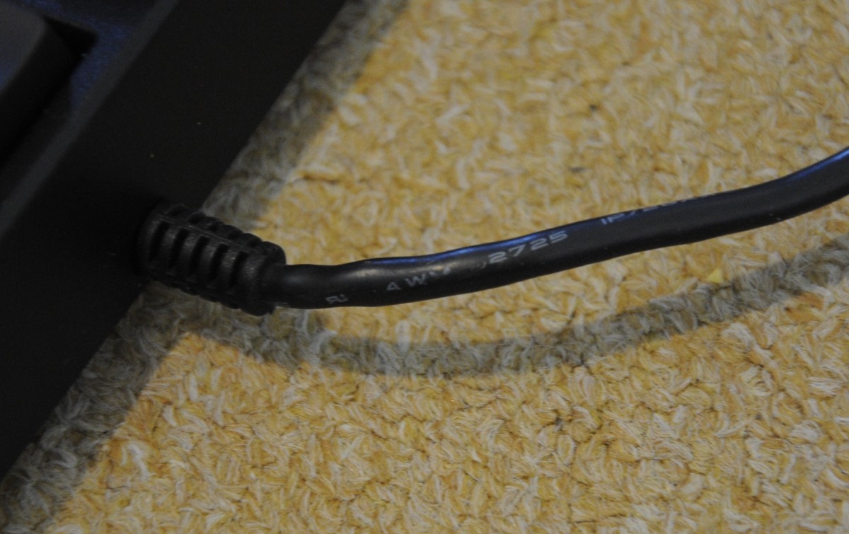Jammergenoeg is de kabel naar de pc weer minder stevig dan ik had gehoopt. Het is een gewone kabel, die redelijk flexibel is en nogal bobbelt. Vast niet erg, maar het had beter gekund. De katten vinden het leuk om op kabels te knagen, deze kabel moet je eigenlijk voor het behoud wel verstevigen.