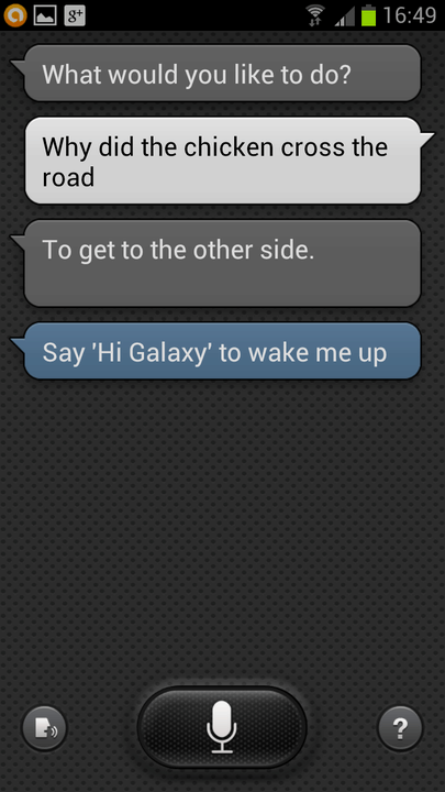 Het leukste aan S-Voice blijft echter de database van Vlingo verkennen. Vragen stellen zoals "The meaning of life", "the meaning of the universe of "why does the chicken cross the road". Kortom S-Voice is leuk en voor basale dingen wellicht handig, maar lang niet zo bruikbaar als Siri. Oh en het doet erg veel zeer om aan je Samsung Galaxy S III te vragen wat de beste cellphone is....