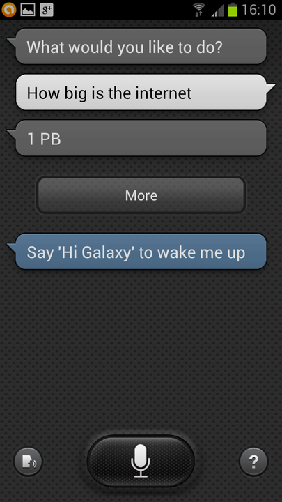 S-Voice zou Samsung's antwoord op Apple's Siri moeten zijn. Welnu, laat ik daar duidelijk over zijn: als Siri goud is dan is S-Voice roestig ijzer. Hoewel Vlingo, het bedrijf achter S-Voice, enorm zijn best heeft gedaan met S-Voice lijkt het in de verste verte niet op Siri. Een dialoog met S-Voice is niet mogelijk en het aantal vragen dat je kan stellen is vrij beperkt. Ook heeft S-Voice de nare eigenschap om je vraag te gaan verwerken als je nog bezig bent deze te stellen.
