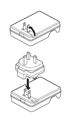 Het EU-model verloopstuk (nummer 3 op de overzichtsfoto hierboven) klinkt eenvoudig over en vast aan de uitklapbare USA-model plug die aan de acculader zit. Dit is met de hand niet los te halen, maar wel door met bijvoorbeeld een balpen de beide vergrendel-nokjes even in te drukken, speciaal daarvoor zijn er gaatjes op de juiste plek gemaakt..