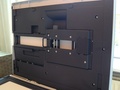 En ja hoor, daaronder zit hij, de scanner zelf. Aan de vier hoeken ingesloten door piepschuim blokken, maar verder niet verpakt in een plastic zak. Wel zitten er op 6 plaatsen felblauwe plastic strips die alle bewegende onderdelen vastmaken aan het apparaat. Twee op het deksel, twee aan de binnenkant op de losse, witte achtergrond plaat en daaronder nog 2 bij het negatief-scan-gedeelte.