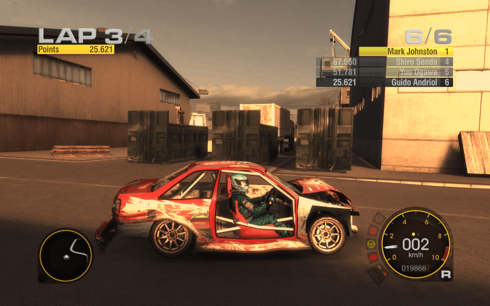Ook tegen tegenstanders aanrijden kan resulteren in een beschadigde auto waardoor je in het slechtste geval door eigen schuld de race moet herstarten omdat je niet verder kunt rijden.