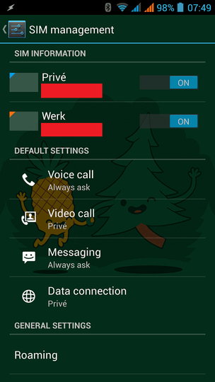 Binnen Android is Dual SIM prima geregeld, je kan er voor kiezen om je gesprekken en/of data altijd over 1 SIM te laten lopen maar je kan het ook splitsen. Ook is het mogelijk om Android altijd te laten vragen welke SIM je wilt gebruiken wanneer je een telefoonnummer belt. Android onthoudt welke telefoonnummers met welke SIM voorheen zijn gebruikt en geeft bij herhaling een "suggested SIM" aan in de popup. Werkt netjes en zoals verwacht.