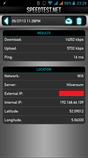 De snelheid is ook in orde, hierbij een speedtest van Wifi.
