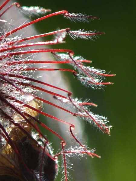 Ideaal aan liveview is voor mij als macrofotograaf verder dat je heel nauwkeurig handmatig kunt scherpstellen. Dat is nodig in verband met de kleine, relatief donkere zoeker van cropcams, zeker omdat je bij macrofotografie zo'n kleine scherptediepte hebt dat een millimeter te ver naar voren of achteren focussen kan betekenen dat de hele foto mislukt is. Liveview geeft de mogelijkheid om sterk in te zoomen op het scherm en dan kun je heel secuur met de focusring van het objectief scherpstellen op de details die je scherp op de foto wil hebben.