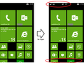 De statusbalk, zoals dat gebruikelijk is bovenaan het scherm, wat diverse zaken weergeeft zoals batterij, provider, geeft helaas standaard alleen de batterijstatus en de tijd weer. Om overige zaken te zien dient eerst een veeg van boven naar beneden uitgevoerd te worden. Pas dan zie je Wifi, Bluetooth 3G etc statussen. Onnodig onhandig, waarom niet altijd dit tonen. zie foto 3. Ook is er een stukje 'niets' tussen de statusbalk en de tegels, waardoor er slecht 6-en-een-halve tegel op het scherm passen; de onderste zijn dus maar half zichtbaar. Waarom niet dit lege deel weglaten zodat je 7 regels met tegels kan tonen?!?