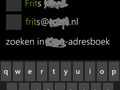 Van de 8,3 cm die het scherm hoog is, worden de bovenste 6,3 cm in beslag genomen door het tekst 'person' ('en' past niet meer als gevolg van de toegepaste lettergrootte), de tekst 'alle', icon voor 'Ik', en icon voor '#', waardoor er ruimte overblijft voor twee contacten, zie foto 1. Moet gezegd: de '#'-icoon is wel handig, brengt je bij een scherm als in foto 1d, waarmee je met een druk op de 'f' meteen naar de eerste Frits gaat in de lijst.