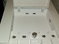 - Ook niet echt handig is dat wil je de top eraf halen, dat je dus eerst alle kabels die aan de top zitten door een klein gaatje halen.