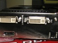 De aansluitingen, met 2x DVI en 1x Displayport, en een turboknopje waarover later meer.