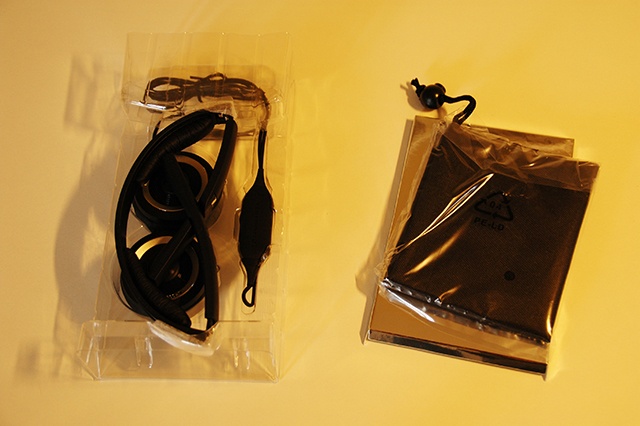 Het uitpakken is vanzelfsprekend. Knip de seal aan de onderzijde van de doos door en trek de inhoud naar buiten. De koptelefoon zelf, de bekabeling en de buidel zijn dan verder eenvoudig uit te pakken.