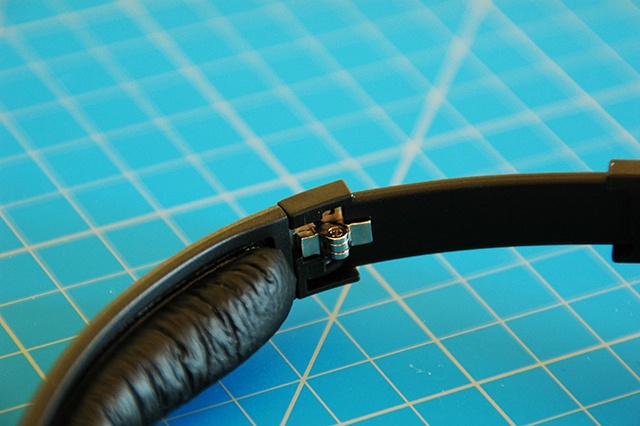 Een nauwkeuriger observatie leert hoe uitgekookt de beugel van de koptelefoon is opgebouwd. De scharnieren van de beugel hebben in hun open stand een duidelijke klik waarmee ze zich vergrendelen. Aan de twee uiteinden van de beugel zijn de secties met de oordoppen in standen te verstellen. Hiermee is de grootte (omschrijvende lengte) van de beugel aan te passen aan de grootte van het hoofd van de gebruiker. Naast het openvouwen van de beugel worden voor gebruik ook de oorschelpen met een slag van 90 graden in het horizontale vlak naar binnen gekanteld. De koptelefoon is dan klaar voor gebruik.