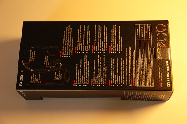 De koptelefoon zelf is zwevend in de doos verpakt gevat in een polystyreen vormstuk waarbij de koptelefoon onderin verpakt is en erboven de kabel opgevouwen is opgeborgen. Het bovenste gedeelte van het vormstuk wordt omgevouwen en sluit zo de kabel op, zodat ze niet door de doos kan verspreiden. Achter het polystyreen vormstuk, onder de koptelefoon is nog een glanzend stuk karton geplaatst dat de koptelefoon nog beter doet uitkomen. Aan de achterzijde van dit karton, een open box van enkele millimeters hoog, is nog ruimte voor de buidel waarin de koptelefoon onderweg kan worden gestopt als ze niet wordt gedragen. Een hangoog aan de bovenkant van de doos maakt duidelijk dat de fabrikant verwacht dat de koptelefoon in de winkel hangt, hangend aan een draadrek.