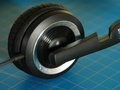 De trekontlasting aan de kabeldoorvoer vanuit de linker oorschelp is kort te noemen. Ze is minder dan een centimeter lang. Wel is de doorvoer gedrongen van vorm en van heel flexibel materiaal. Het kan best zijn dat deze oplossing een meer effectieve is om kabelbreuk te voorkomen dan een langere en hardere trekontlasting. Ik geef het de gunst van de twijfel, de tijd zal het leren. Door de korte trekontlasting betrap ik mezelf er wel op dat ik bij het oprollen van de kabel, na het opvouwen van de koptelefoon, het eerste stuk direct achter dit doorvoerpunt nadrukkelijk een ruime bocht laat maken om de buigradius niet te klein te laten worden. Dat werd ze namelijk wel naar mijn mening. Een wat langere trekontlasting zou ikzelf comfortabeler vinden, dan neemt het ontwerp het over om op de correcte buigradius te letten.