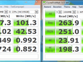 De benchmarks die ik heb gedraaid bevestigen dit ook, en tonen het verschil tussen mijn oude Samsung Spinpoint 1TB en mijn nieuwe SSD, op een relatief oud systeem. Zoals je kan zien zit ik aardig tegen de limiet van SATA 3Gb aan.