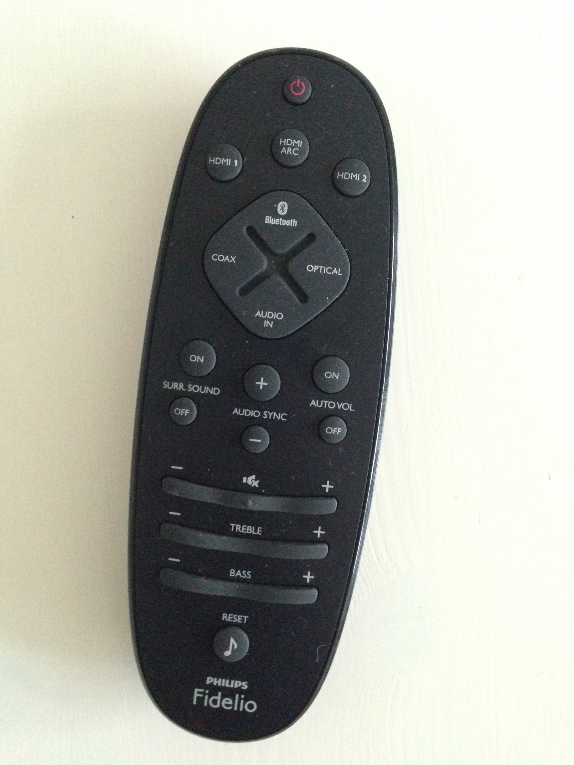 Ondanks dat de afstandsbediening duidelijk overzichtelijk is en prima in de hand ligt, wil ik er toch kort aandacht aan besteden. Er zit namelijk een reset knop onderaan de afstandsbediening. Hiermee kun je de treble en bass instellingen terug zetten naar de fabrieksinstellingen, iets wat ik in de basis goed bedacht vind. Het nadeel van deze uitwerking is dat de knop te prominent aanwezig is op de afstandsbediening en er geen enkele bevestiging nodig is om de reset door te voeren. Een onbedoelde druk op de knop zorgt er dus voor dat je persoonlijke treble en bass instellingen direct weg zijn - no way back.