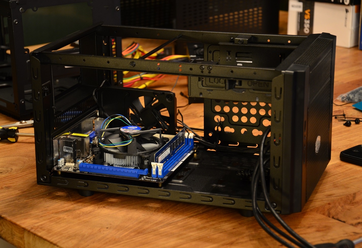 Inbouwen van een relatief open mITX kastje is natuurlijk weinig spannend. De Elite 130 is klein, maar voldoende ruim en open om geen problemen te veroorzaken bij het bouwen er van.