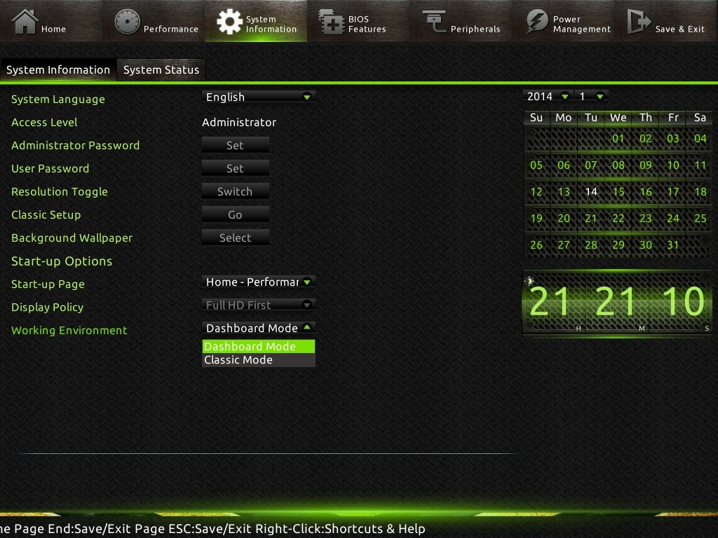 Schakelen naar de klassieke interface is natuurlijk ook gewoon mogelijk, zodat je de interface hebt die meer lijkt op die in oudere biossen. Hieronder wat screenshots om een idee te geven hoe het eruit ziet.