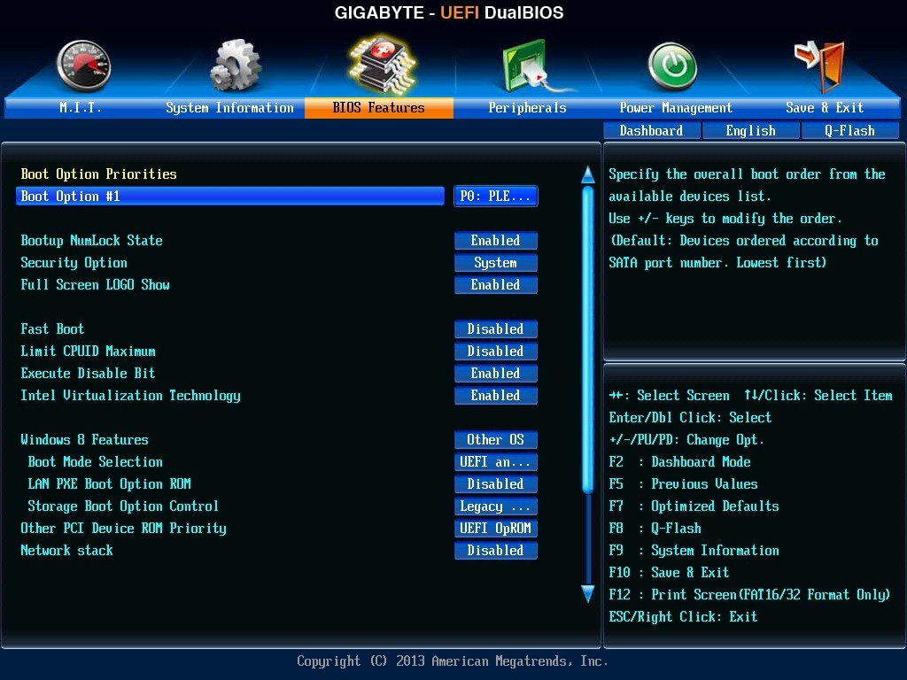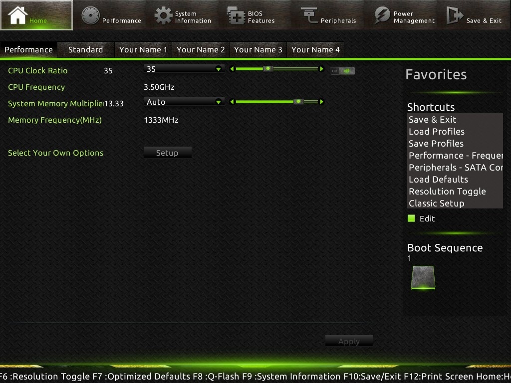Gigabyte levert een vrij goede UEFI mee, je kunt zelf een overzicht maken van paginas die je veel gebruikt en ook een 'homepage' instellen. Dus als je de UEFI ingaat, dat hij direct naar die pagina gaat in de UEFI.
