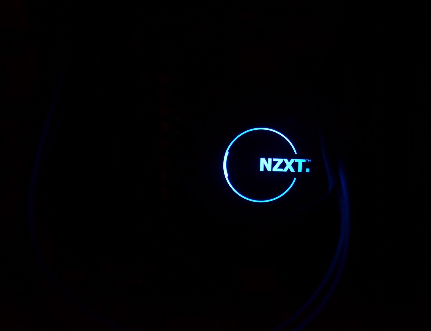 Aan de andere kant van de slangen vinden we de het contactblok met de cpu, wat uiteraard van koper is, met daar binnen in de pomp. De ring en de letters NZXT zullen straks op gaan lichten. Het blok is aan de platte kant, wat natuurlijk geen kwaad kan, en komt met een plastic kapje uit de doos om de reeds aanwezige koelpasta te beschermen. In tegenstelling tot wat ik vaak zie zit de pasta er dus van te voren op. Veel bouwers gebruiken koelpasta verkeerd (vaak gebruikt men te veel), dus op zich een leuk idee voor de gemiddelde consument. Uiteraard bij iemand die hem later wil verplaatsen moet je dan zelf extra koelpasta regelen.