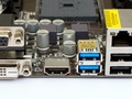 Op het bord zit 1 PCIe x16slot, een PCIe x1 slot en 1PCIslot. Een 4e slot ontbreekt, op de plek daarvan zitten namelijk wat headers voor USB, LPT en serieel. In plaats van 4 DDR3sloten zitten er slechts 2 DDR3sloten, zodat het bord wat minder lang hoeft te zijn, en zijn de SATApoorten vrij direct achter het PCIslot geplaatst, en ook niet gekanteld.