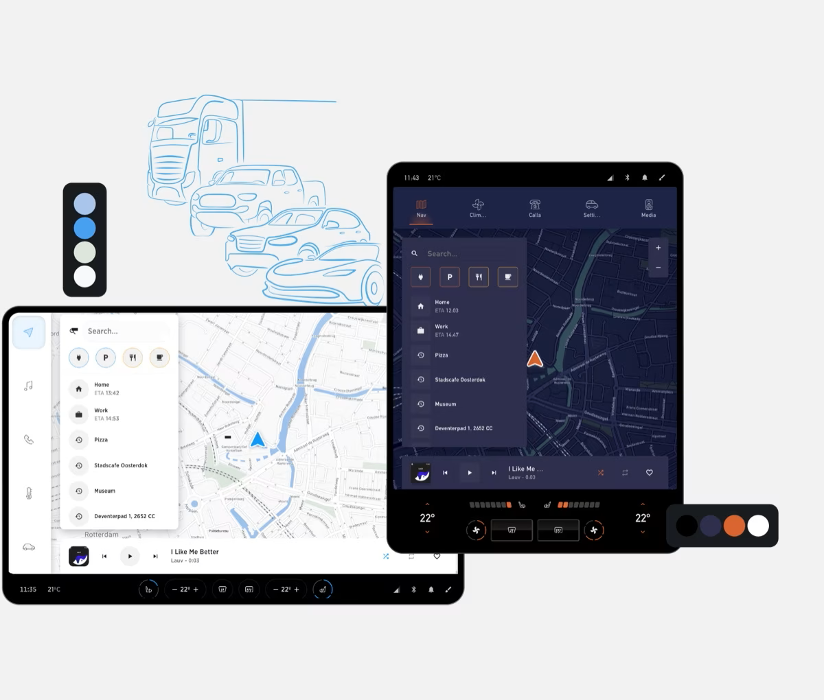 "Ten opzichte van Android Automotive voegen we bijvoorbeeld onze navigatiemodule, search en kaartvisualisatie toe. Daarnaast verzamelen we geen privacygevoelige data, wat Google wel doet. Als je ons vergelijkt met andere concurrenten, dan hebben we ontzettend veel ervaring met userexperience, vanuit onze consumentenachtergrond. Dat hebben b2b-bedrijven over het algemeen niet, die gaan meer clunky producten maken dan wij, terwijl wij een hele historie en afdeling hebben die alleen maar met de userexperience werkt."