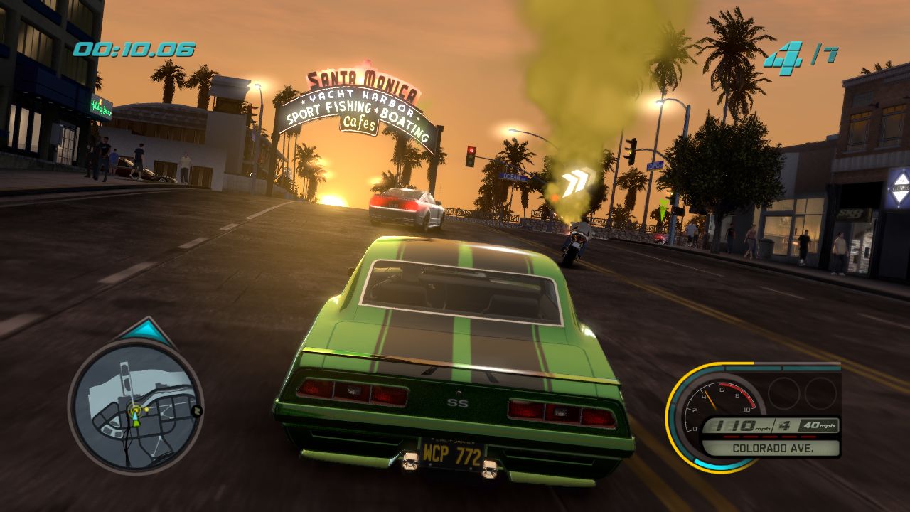 Dat is ook terug te zien aan de auto's. Een chromen laklaagje zorgt ervoor dat je in een heerlijk glimmende bak rondrijdt, waar alle lichtbronnen in het spel keuring in real-time op worden gereflecteerd. Daar staat tegenover dat de rest van de omgeving er niet altijd even gedetailleerd uitziet, voor zover je daar oog voor hebt als je met 180 mijl per uur door de straten van LA scheurt.