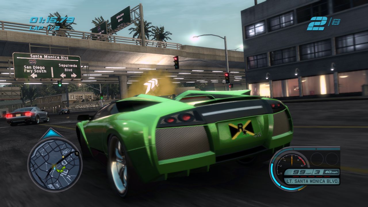 Dat geldt ook voor de manier waarop de singleplayer-modus is opgebouwd. Een meneer van buiten de stad komt naar LA, gaat op zoek naar eeuwige straatrace-roem en - uiteraard - geld. Hij begint in een langzame ragbak waarmee hij om een paar honderd dollar rijdt, maar werkt zich daarna op om in snellere auto's te races en om meer geld te verdienen. Dat gaat zo door tot hij genoeg geld heeft voor een écht snelle kar, met de nodige aanpassingen aan zowel de buiten- als de binnenkant. Kortom: gesneden koek.