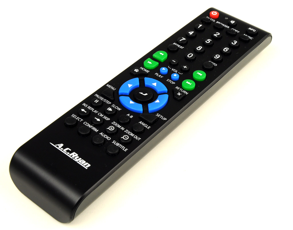 De afstandsbediening van de PlayOn!HD is prima; de toetsen voelen goed aan en zijn duidelijk gemarkeerd. In tegenstelling tot zijn concurrenten heeft AC Ryan ervoor gekozen om de toetsen die gebruikt worden voor zaken als ondertiteling en de audio-instellingen aan de onderzijde te plaatsen. Dit vergt enige gewenning, maar storend is het niet. De 'commercial-skip-knop', die een video per toetsdruk 30 seconden vooruit laat springen, kan bij het bekijken van tv-opnames een uitkomst zijn.