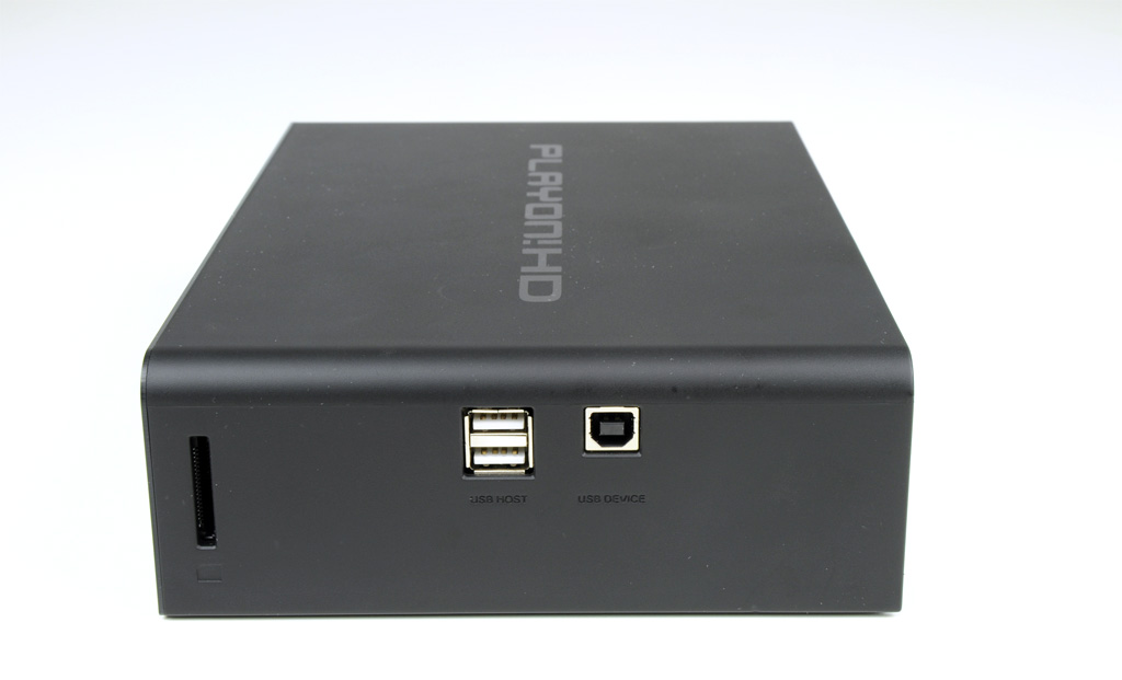 AC Ryan levert de speler zeer compleet af: in de doos vinden we niet alleen een afstandsbediening, een setje aaa-batterijen en de voeding, maar ook kabels voor usb, composiet, component en hdmi. Alleen de bekabeling voor het maken van een s/pdif-verbinding ontbreekt. De speler heeft twee usb-host-poorten en een usb-slave-uitgang. Met deze laatste poort kan de PlayOn!HD aan een pc worden gehangen, bijvoorbeeld om de harddisk te vullen met materiaal of om juist een backup te maken. Ook kan aan een van de twee usb-host-poorten een wifi 802.11n-adapter worden gehangen, maar deze is optioneel en niet in deze review meegenomen.