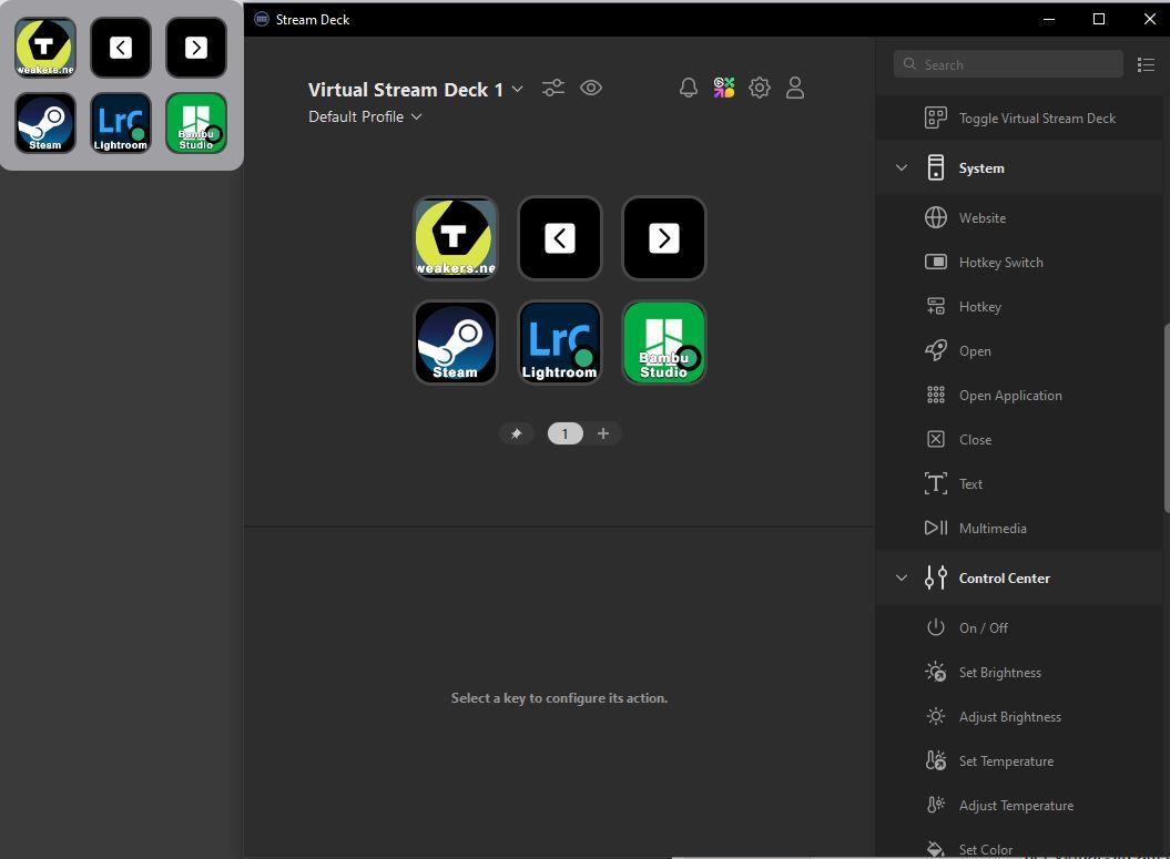 Aan de andere kant is het raar dat Corsair het keyboard niet herkent in zijn eigen iCUE-software. Dat vindt Corsair zelf klaarblijkelijk ook, want volgens een blogpost van begin oktober werkt het bedrijf aan integratie in iCUE. Over work in progress gesproken: dochterbedrijf Elgato heeft een bèta van het Virtual Stream Deck (VSD) waarmee je Stream Deck-functionaliteit toevoegt aan je keyboard. Het keyboard heeft daarvoor zelfs een aparte Elgato-toets, op de plaats van de rechtercontrol. Ik weet niet of ik het helemaal verkeerd doe, maar die toont alleen maar een (virtuele) Stream Deck-overlay op je scherm, die je met je muis kunt aanklikken. Ik zou het fijner vinden als je ook VSD-acties met het keyboard zou kunnen uitvoeren.