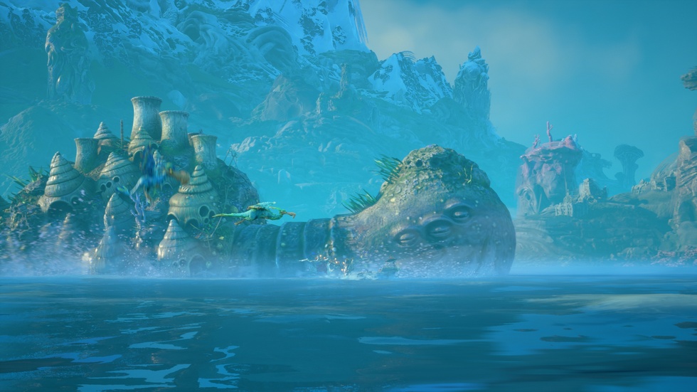 Knap is ook de manier waarop de spelwereld is ontworpen en vormgegeven. Ik noemde al dat Salvador Dalí een inspiratiebron is geweest voor Keeper. De surrealistische stijl die Dalí erop nahoudt in zijn werk, zie je terug in de game. Diverse delen van de wereld hebben een surrealistisch karakter. Daarnaast is ook The Dark Crystal een inspiratiebron geweest. Je doorkruist in Keeper bijvoorbeeld allerlei grotten die me aan The Dark Crystal deden denken, maar ook sommige bewegende objecten in Keeper vinden hun oorsprong volgens mij in deze film uit de jaren 80. Het levert in elk geval een zeer origineel ogende wereld op, die af en toe behoorlijk trippy aanvoelt.