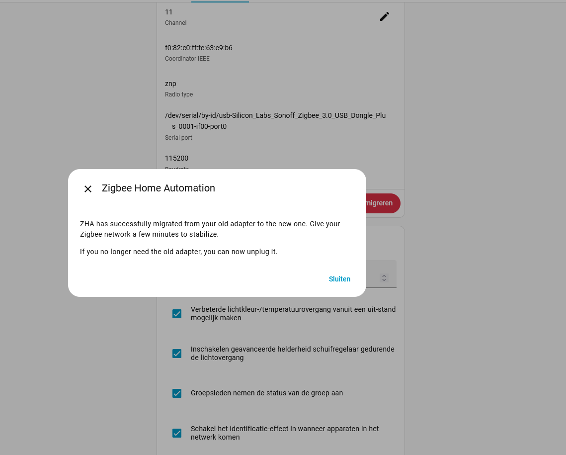 Dat de ZBT-2 uit de keuken van Home Assistant komt, merk je aan het installatiegemak. Ik heb de migratie van mijn bestaande netwerk naar de ZBT-2 uitgetest met de Zigbee-integratie voor Home Assistant: ZHA. De migratie van de Sonoff-adapter was binnen een paar kliks voor elkaar en vanaf dat moment draaide het netwerk direct prima. Ik heb dezelfde migratie met Zigbee2MQTT niet uitgeprobeerd, maar andere testers melden ook hiermee positieve resultaten.
