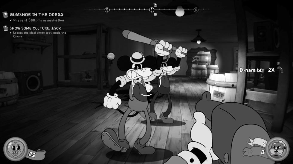 Mouse: P.I. for Hire heeft deze look dus ook en dat geeft het spel direct een heel klassieke uitstraling. Het is alsof de Mickey Mouse van de jaren '30 in een alternatieve tijdlijn een doorgerookte detective geworden is en terechtkomt in een gewelddadig avontuur. Inspiratie daarvoor haalden de ontwikkelaars van Fumi Games zeker niet alleen uit Disneys bekende muis, maar ook uit het werk van Fleischer Studios, de bedenkers van onder meer Betty Boop en Popeye. In de manier waarop de omgevingen en personages ontworpen zijn, zit veel inspiratie uit Popeye.