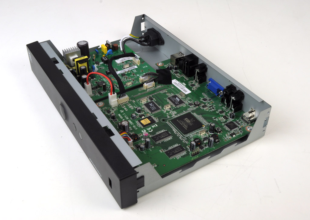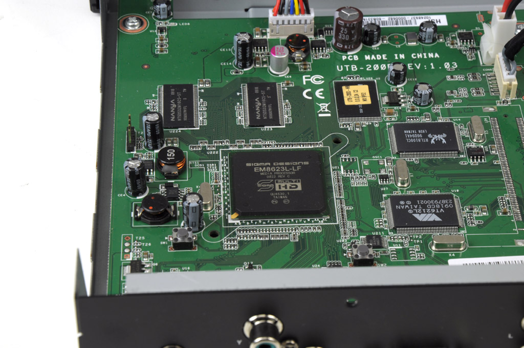 Grote afwezige bij de aansluitingen is een ethernetpoort, maar Dutchtronic heeft er zoals gezegd voor gekozen om de netwerkconnectiviteit via een Powerline-adapter te bieden. Overigens is de voeding keurig in de behuizing verwerkt. Mogelijkheden om een wifi-aansluiting te maken via een van de beschikbare usb-poorten ontbreken, terwijl dit bij veel andere mediaspelers wel kan. Ook is het onmogelijk om in de behuizing een harddisk te plaatsen.