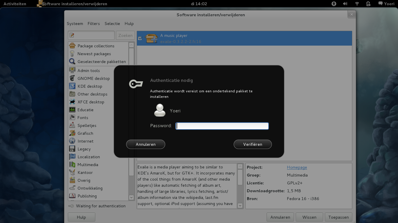 Fedora staat bekend om zijn eigenzinnige design. Op het bureaublad prijkt een nieuwe wallpaper, ontworpen door het designteam van Fedora. Het wijzigen daarvan gaat niet eenvoudig. Op vrijwel elk groot besturingssysteem kan de bureaubladachtergrond worden aangepast door op de rechtermuisknop te drukken. Gnome 3.x staat dat echter niet toe. De wallpaper kan alleen worden aangepast door via het activiteitenvenster naar de systeeminstellingen te gaan en een afbeelding te kiezen. Opnieuw verloren tijd, vinden we.