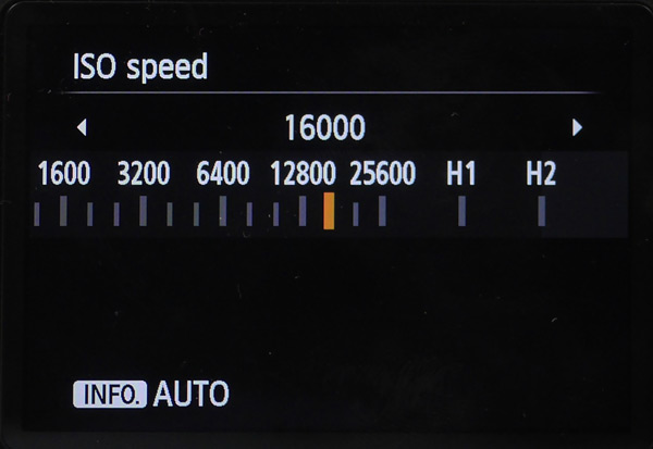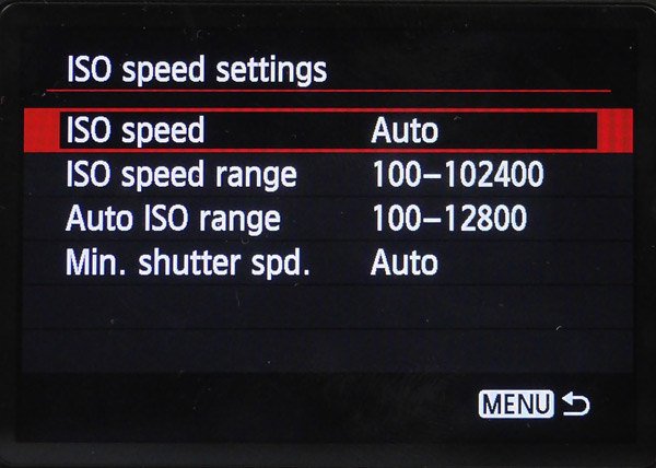 De Canon-camera heeft de auto-iso-functionaliteit slim geïmplementeerd. Zo kan niet alleen het bereik zelf gedefinieerd worden, maar zijn er ook opties voor de minimaal toegestane sluitertijd. Deze kan onder meer automatisch bepaald worden aan de hand van de gekozen brandpuntsafstand van de lens, maar ook kan een vaste waarde gekozen worden. De auto iso-functionaliteit is eveneens beschikbaar in de M-stand.