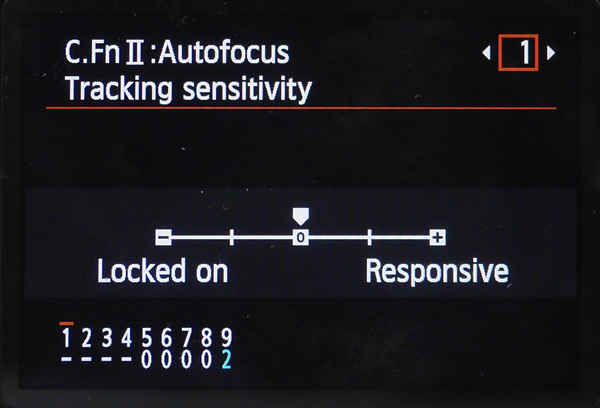 De camera heeft verder uitgebreide mogelijkheden om de werking van het af-systeem aan te passen. Zo kan de gevoeligheid van het trackingmechanisme ingesteld worden, is de versnelling van de autofocus te regelen en kan zelfs bepaald worden of het eerste of tweede beeld in een burst een focus- of shutter-prioriteit heeft. Dergelijke zaken kom je meestal niet tegen bij een consumentenmodel.