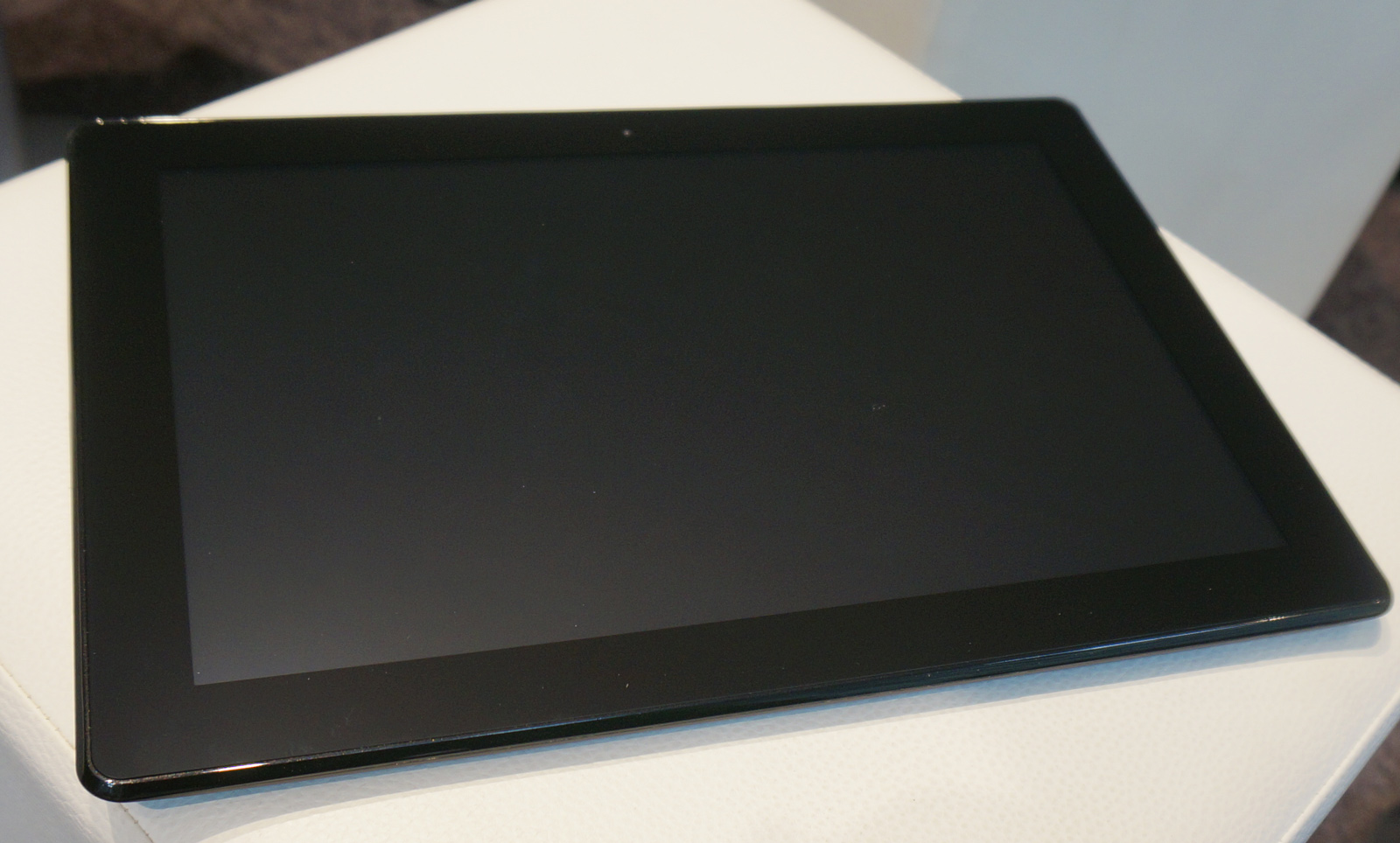 De tablet is 1,3 kilogram zwaar en wie het apparaat een tijd in één hand houdt, krijgt als snel een vermoeide arm. Archos levert een steun mee, maar hoewel die niet op de beursstand aanwezig was, kunnen we uit foto's opmaken dat het om een eenvoudige kunststof steun gaat, die het gebruiksgemak niet significant zal verbeteren. De tablet is met zijn aluminium achterkant wel lekker stevig en de afwerking is in orde. De zijkanten van de achterkant zijn van mat kunststof en bieden een goede grip.