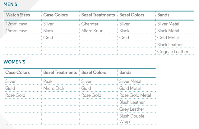 Motorola heeft twee basisvarianten van de Moto 360, in 46mm en 42mm. Dat is in navolging van bijvoorbeeld Apple, die de Apple Watch heeft in 42mm- en 38mm-smaken. Daarnaast zijn er veel meer opties om kleuren van de bezels, de behuizing en de bandjes te combineren. Dat gebeurt in het buitenland in elk geval met de onlinedienst Moto Maker. Die dienst werkt niet in de Benelux, dus hoe dat zou gaan gebeuren, of dat Motorola bepaalde standaardversies verkoopt, is nog niet helemaal duidelijk.