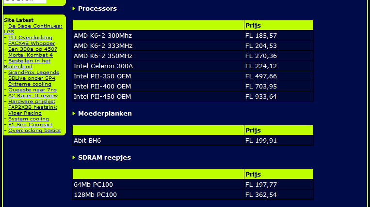 Een voorbeeld was de prijsvergelijker van World of Tweaking, die bestond uit slechts één pagina, waarop de laagste prijs van enkele hardlopende producten werd bijgehouden. De inhoud bestond vooral uit populaire processors, moederborden en generieke producten, zoals geheugenreepjes met een bepaalde capaciteit. Bij gebrek aan beter was men snel tevreden. Er werden discussies gevoerd over de vraag of het briljante idee om e-mail-links bij artikelen te plaatsen moest worden overgenomen en in de reacties werd de mogelijkheid toegevoegd om door middel van de [url]-tag links te maken.