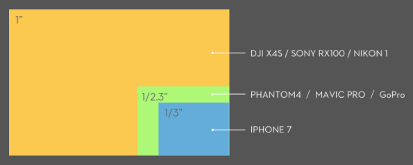 Hoewel een grotere sensor in principe ook leidt tot meer verschil in scherptediepte, is de speelruimte in dit geval beperkt. Met een reguliere camera kun je op enkele centimeters van het onderwerp gaan zitten, maar met een quadcopter niet, zeker niet als de object-avoidancesensoren zijn geactiveerd. Vanaf een meter is alles scherp en omdat er in de praktijk vaak een grote afstand zit tussen de camera en de grond, is spelen met beperkte scherptediepte niet echt aan de orde.