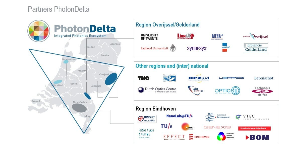 Als het aan overheden, bedrijven en universiteiten ligt, komt daar een nieuwe, belangrijke tak bij: die voor fotonica. Vorig jaar kwamen ze overeen de komende acht jaar meer dan 240 miljoen euro te investeren in de Nederlandse fotonicasector, verenigd in de publiek-private samenwerking PhotonDelta. De regio Eindhoven speelt een belangrijke rol bij dit initiatief, maar ook de Novio Tech Campus in Nijmegen, de Radboud Universiteit Nijmegen, evenals de universiteiten en techbedrijven in Twente en Delft. Het kabinet schaarde zich achter een Nationale Agenda Fotonica, die van de technologie een speerpunt maakt en waarmee Nederland zich internationaal presenteert als één grote fotonische regio.