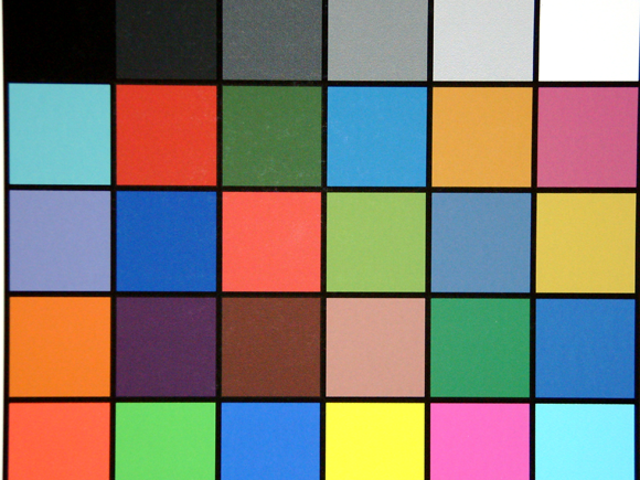 De L11 vertoont erg weinig ruis op ISO800, maar de ruis die zichtbaar is, is vooral afkomstig uit het groene en het blauwe kanaal. De ruis lijkt ook grover van formaat te zijn, vergeleken met de resultaten van bijvoorbeeld de Canon A560. De kleurkaart laat zien dat roodtinten wat oranje overkomen op de foto en oranjetinten worden te geel. Ook groen blijkt problematisch: alle groentinten zijn te licht geworden.