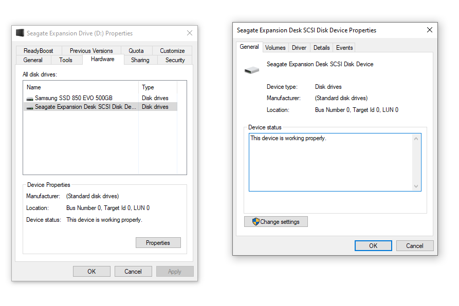 Voordat we de externe harde schijf openen, hebben we eerst getest of hij correct werkte via USB. Dat lijkt triviaal, maar het zou natuurlijk zonde zijn als je er pas na het shucken, en het verliezen van je garantie, achter komt dat jouw exemplaar een doa betreft. In Windows werd de externe schijf probleemloos herkend als 'Seagate Expansion Desk SCSI Disk Device'. Goed nieuws dus, maar nog geen hint op welk type schijf er vanbinnen zit.