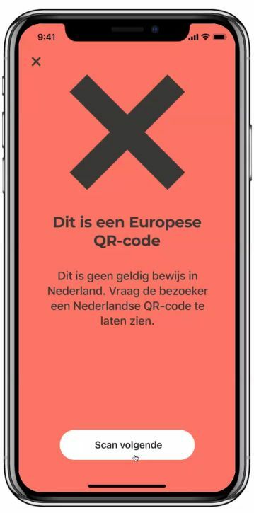 Je hoeft je tijdens het gebruik daarover geen zorgen te maken. Als je bij een festival staat en je laat je Europese QR-code zien, zal CoronaCheck Scanner aan degene die het scant laten zien dat het een Europese code is en de suggestie geven om de Nederlandse code te laten zien.